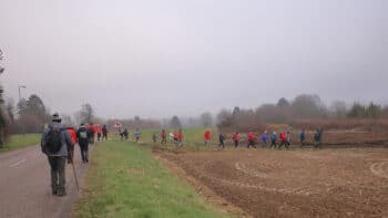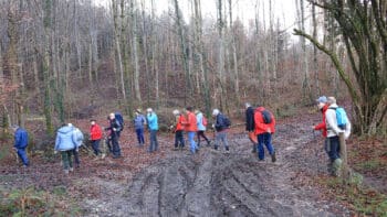 2ème marche à la demi journée de la nouvelle année. Malgré une très forte pluie la nuit et un temps maussade le matin, 20 personnes se sont retrouvés sur le parking de la Blongeotte pour une marche de 10 km qui nous a emmené sur le chemin de Turchaux puis le long de la piste de Belchamps. Retour par le chemin qui longe l’autoroute, beau chemin mais assez brillant ! La chance ne nous a pas sourit jusquà nos voitures car un débardage de grumes a eu lieu ces jours ci rendant le dernier km très boueux.