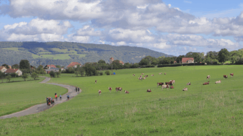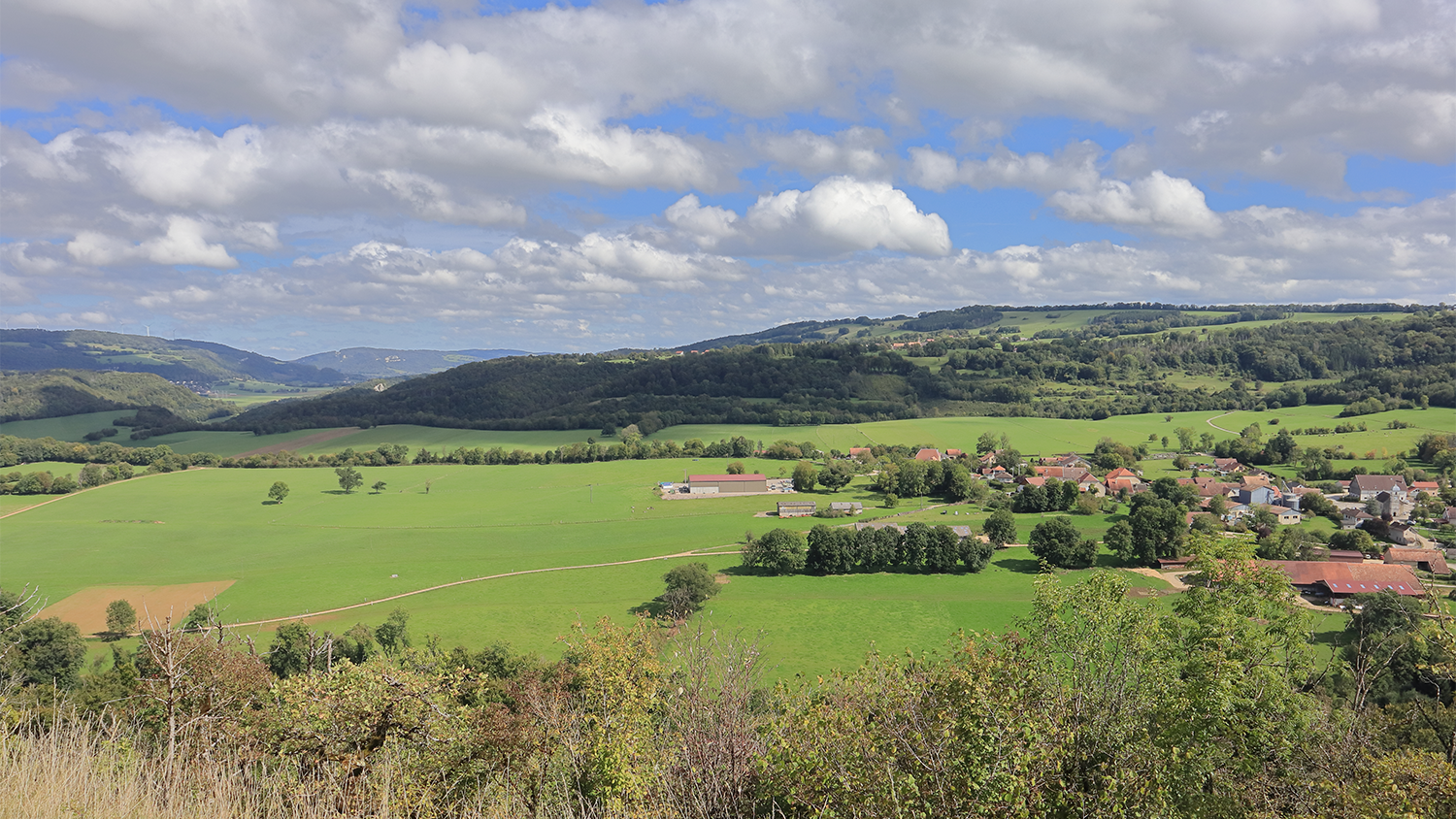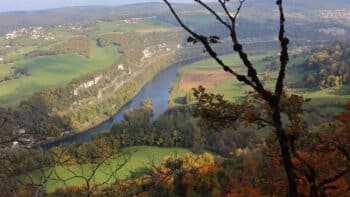 Nous commençons par grimper pour atteindre le belvédère de la Grange Vuillotey puis celui de Chassignol avec leurs magnifiques points de vue sur Baume les Dames et les méandres du Doubs.