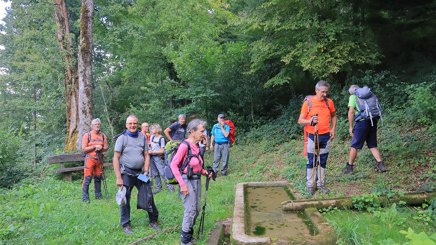 Nous poursuivons notre marche afin d’arriver aux Étangs des Princes pour en faire le tour puis traversons le petit village d’Echenans et retour à Sainte Marie pour partager à huit le pique nique de midi bien installer à l’ombre sous les arbres