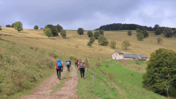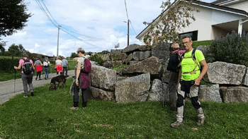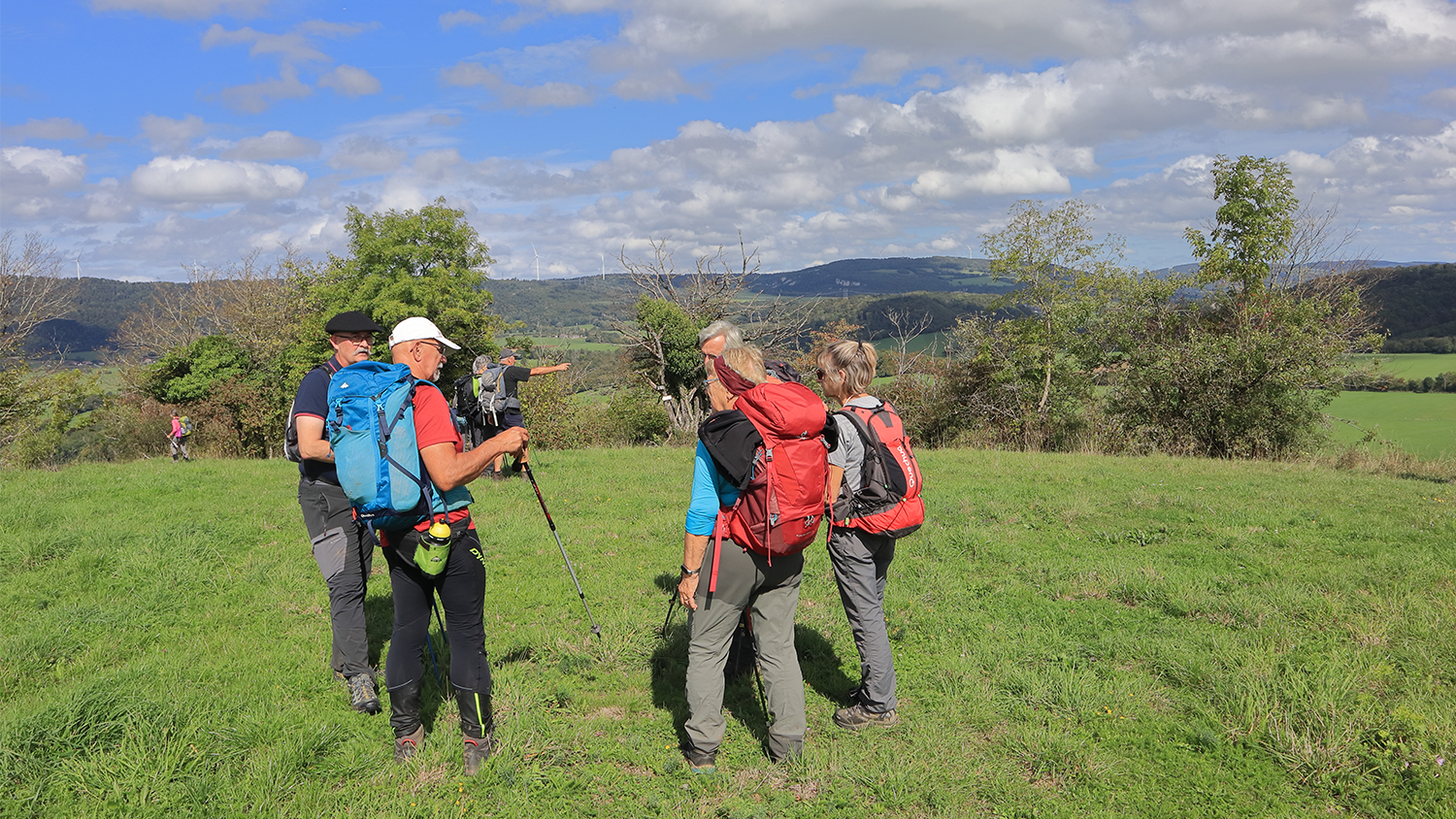 Le petit groupe s’élance sur le sentier jusqu’à la borne intercommunale des 4 Fins.