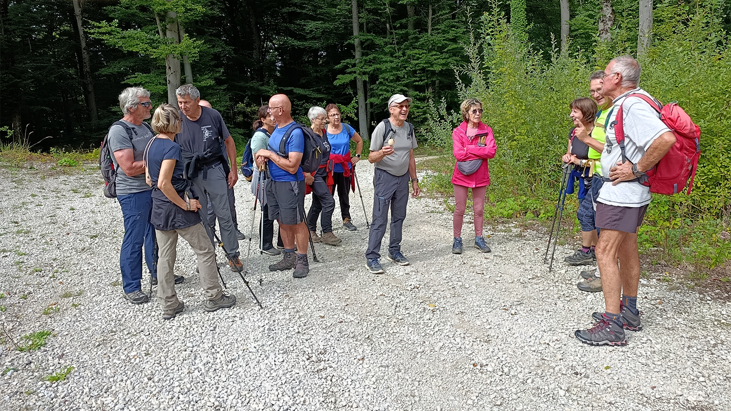 27 personnes sont présentes sur le parking du Majestic à Mandeure pour participer à la demi journée organisée par Gérard.