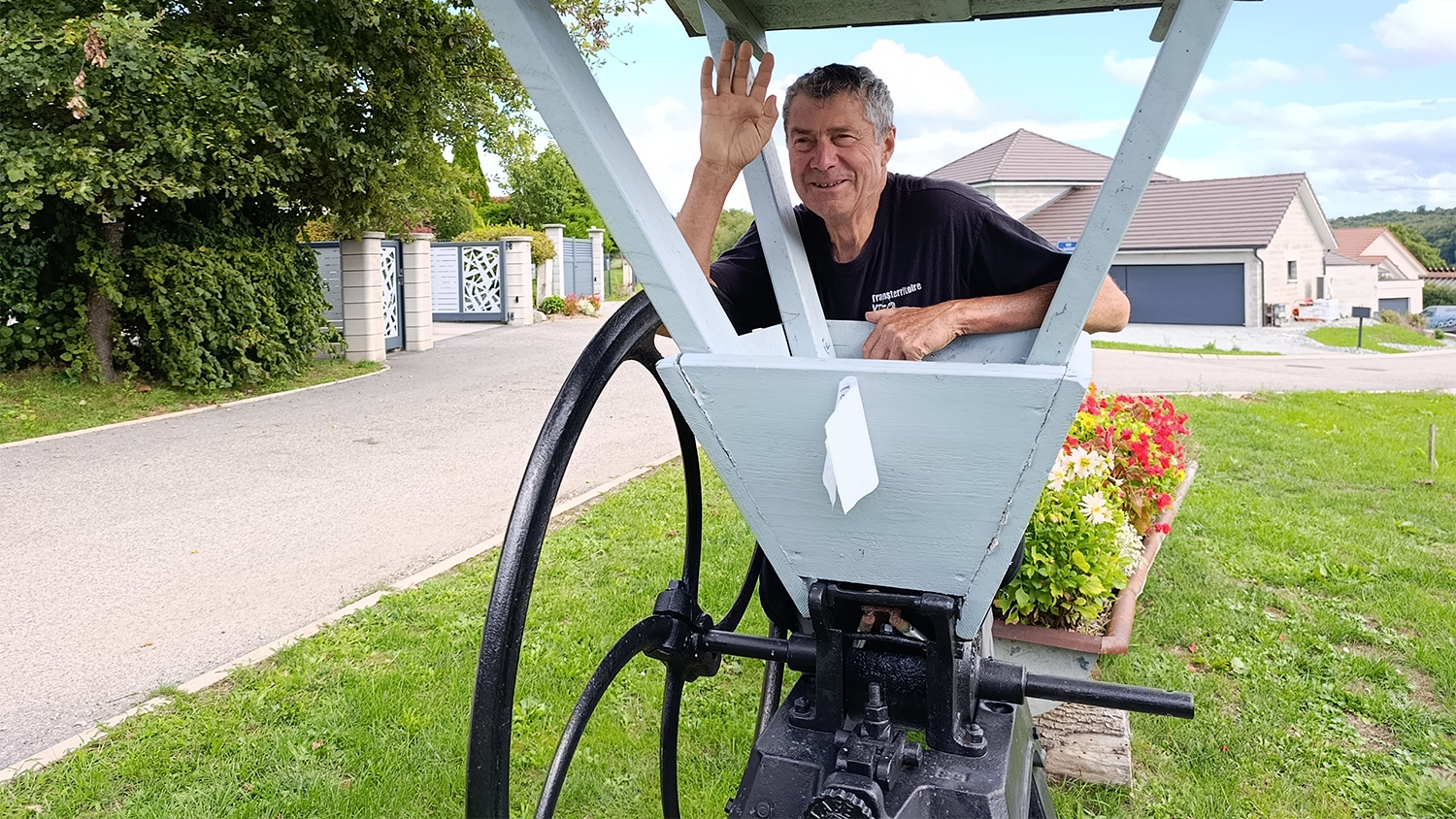 Au départ du temple de Sainte Marie , nous empruntons la piste cyclable en direction de Saint Julien les Montbéliard où nous prenons la pose à la fontaine du village.