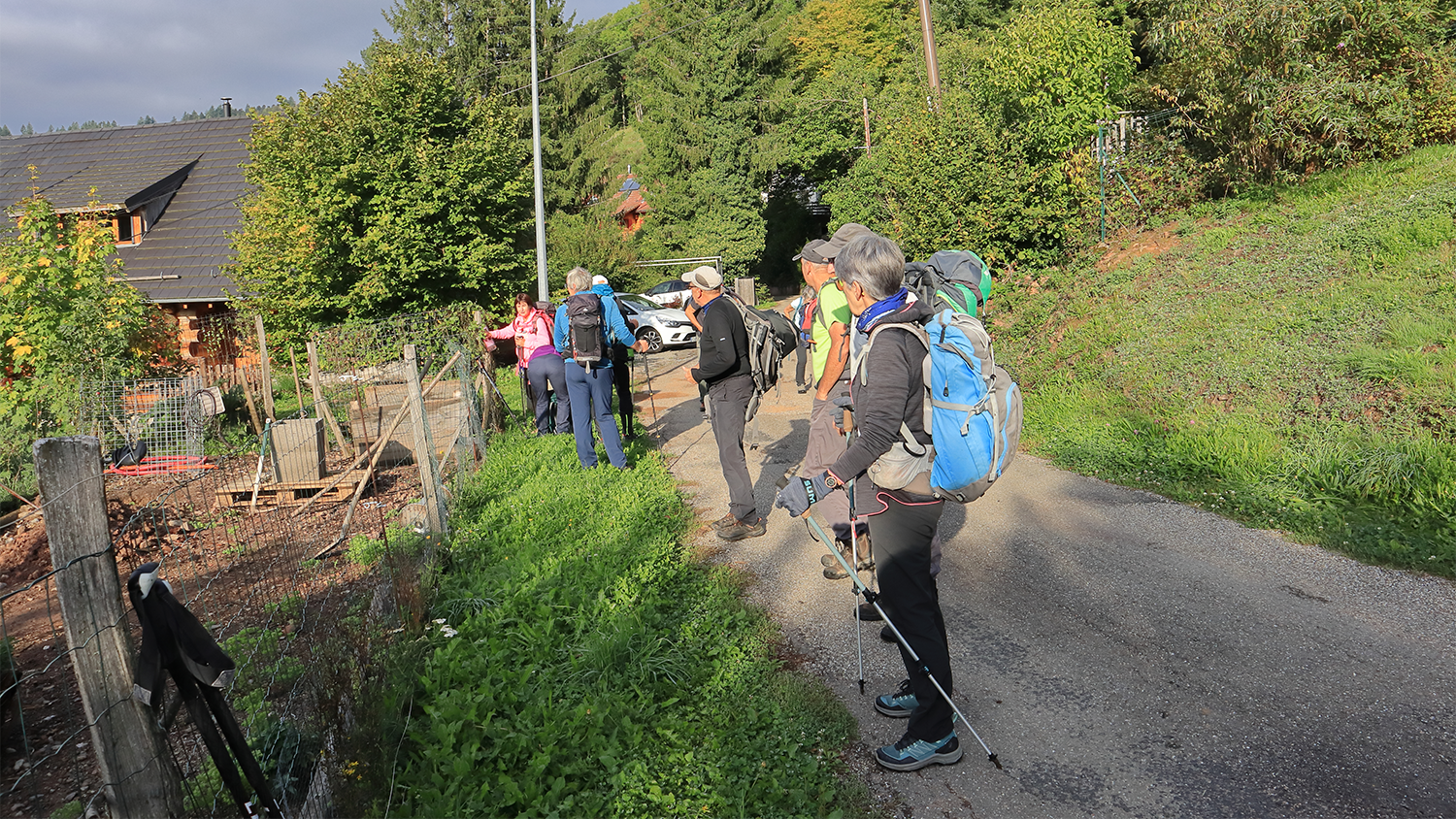 19 personnes prennent le départ depuis le parking de Villars sur Fontenais en Suisse.