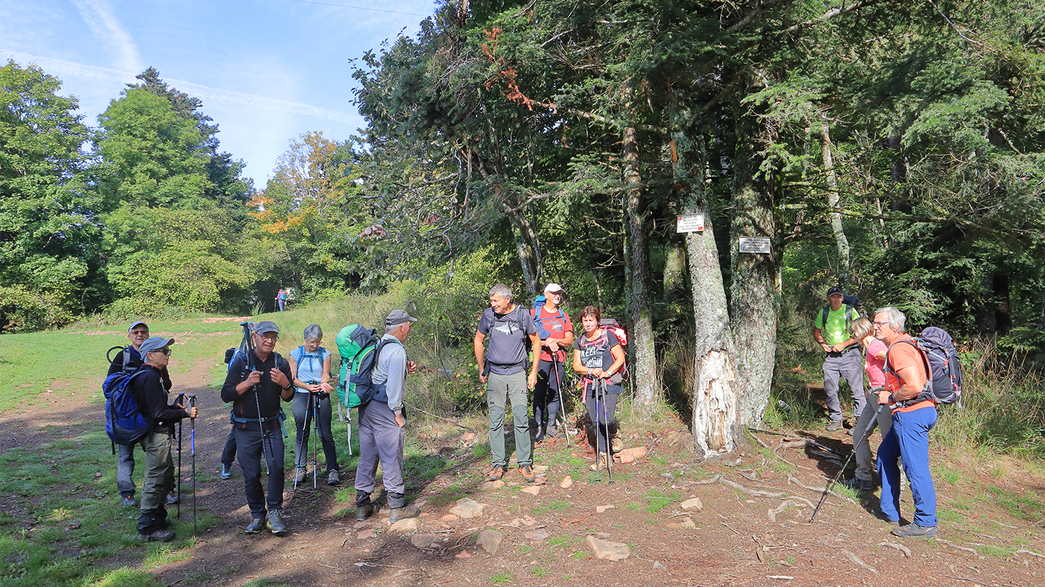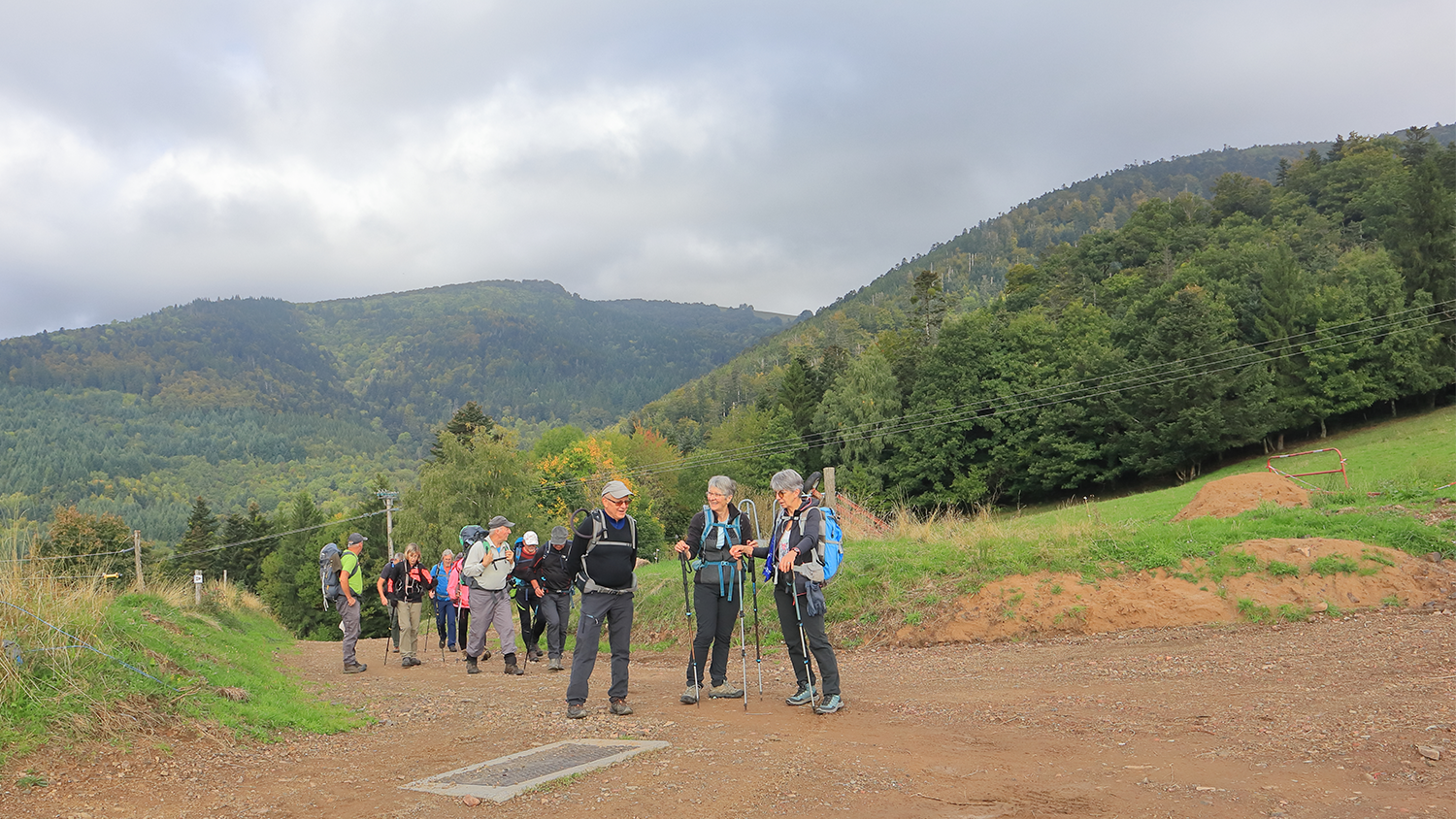10 personnes se retrouvent place de l’Hotel de Ville à Plancher-les-Mines pour une marche à la journée organisée par Bernard R. Nous empruntons rapidement un sentier dans le bois pour atteindre le secteur « Les Mousses » puis nous rejoignons le GR59. Nous passons pas loin de Belfahy et arrivons au Col de Chevrères (914 m), Col baptisé « COL THIBAUT PINOT ». Nous poursuivons notre chemin pour arriver à 1042 m d’altitude, puis prenons un sentier en direction du « Col sans Nom ». Après notre pause repas nous commençons la descente tout en douceur et toujours à travers bois où nous longeons le secteur « Goutes des Saules ». Après 19 km et 820 m de dénivelé nous sommes de retour aux voitures.