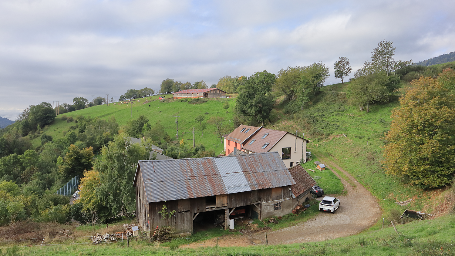 Après avoir longé les vergers nous empruntons un sentier à travers champs et foret avant de déboucher sur le GR du pays de Montbéliard en direction de la « ferme du Haut des Bois ».
