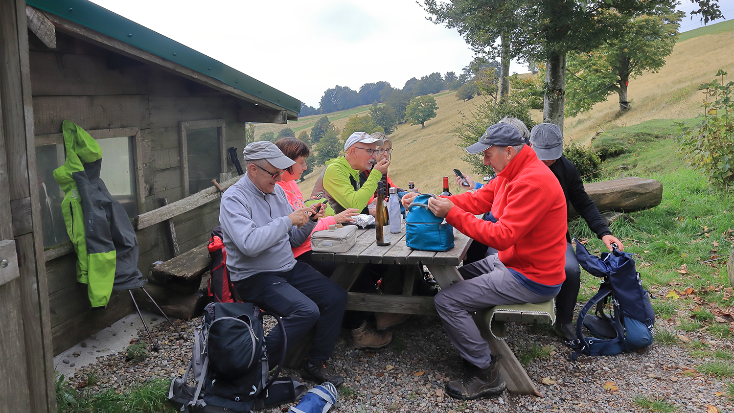 Petite pause afin de reprendre notre souffle avant de poursuivre jusqu’au chalet des amis de la nature aux Chainons où nous installons pour le repas.