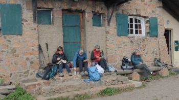 Nous continuons notre ascension, passant devant la ferme auberge du Thannerhubel pour arriver au refuge du même nom (1100m) où nous décidons de prendre notre repas à l’abri du vent.