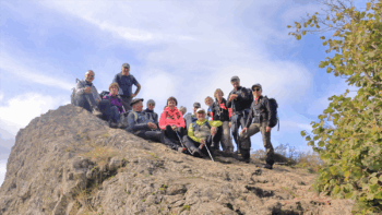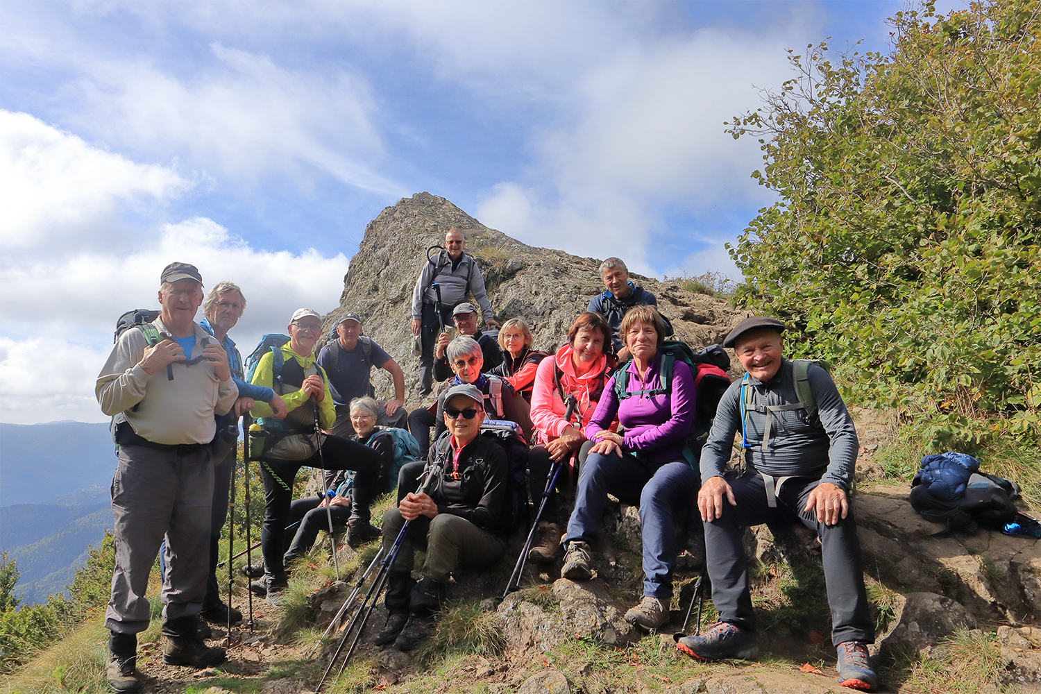 Nous prenons le chemin du retour passant devant le rocher du Corbeau (950m) avant de rejoindre nos voitures et remercier Chantal et Philippe pour cette belle journée.