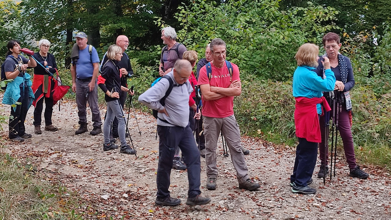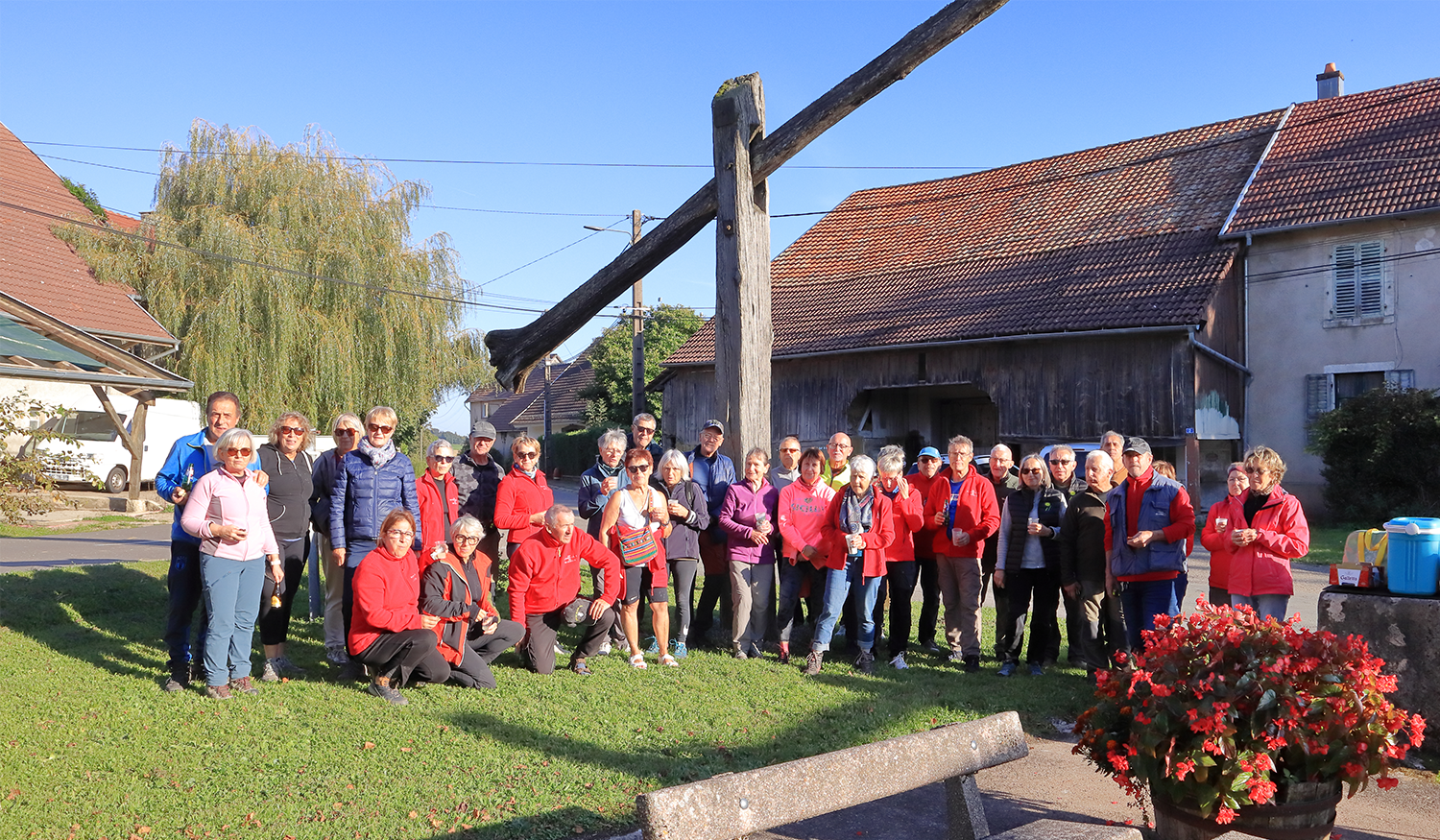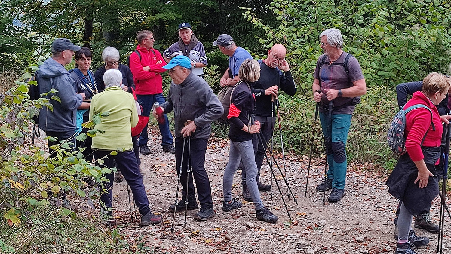 8 randonneurs du club de Bourogne sont venus rejoindre les 28 personnes déjà présentes à Croix pour participer à la demi journée de 10,5 km organisée par Sylvie (total :36 marcheurs).