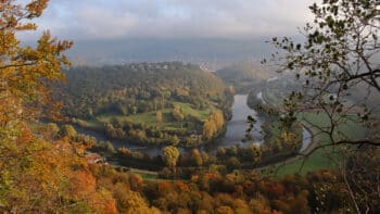 Avant de redescendre nous admirons la vue depuis la croix sur la vallée et les méandres du Doubs.