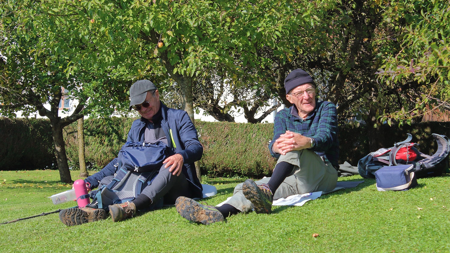 Pause repas au soleil dans une clairière avant de reprendre par le sentier de la Comtesse Henriette.