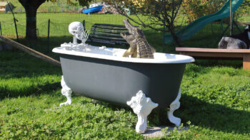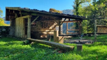 Après avoir marché un petit moment dans les bois nous découvrons une très jolie cabane forestière où un anniversaire a lieu pendant ce week end.