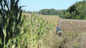 Départ depuis les puits à balancier pour une petite balade ensoleillée autour du village alternant champs et forets.