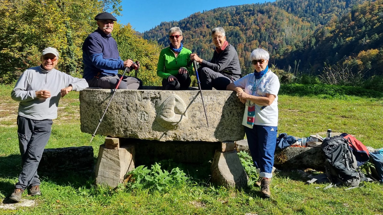 Le club de randonnée de Rougemont se joignaient à nous pour découvrir la vallée du Doubs et sa beauté. Après un départ à Liebvillers , nous nous dirigeons vers la grotte du Bisontin pour ensuite redescendre le long du Doubs et gagner Noirefontaine .