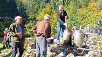 Le repas a lieu au milieu des ruines d’une ancienne marcairerie dont il ne reste plus que les murets en pierres sèches.