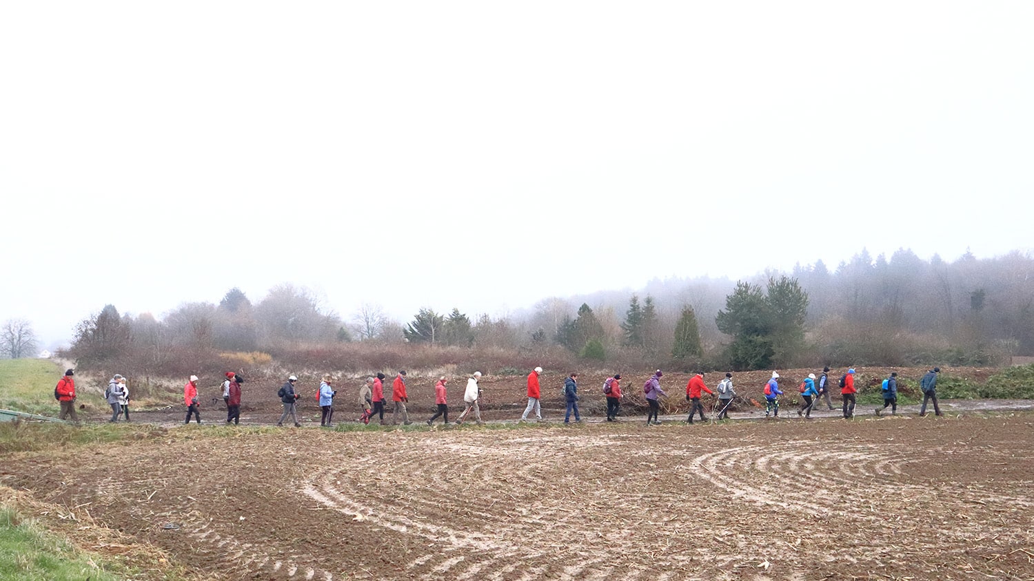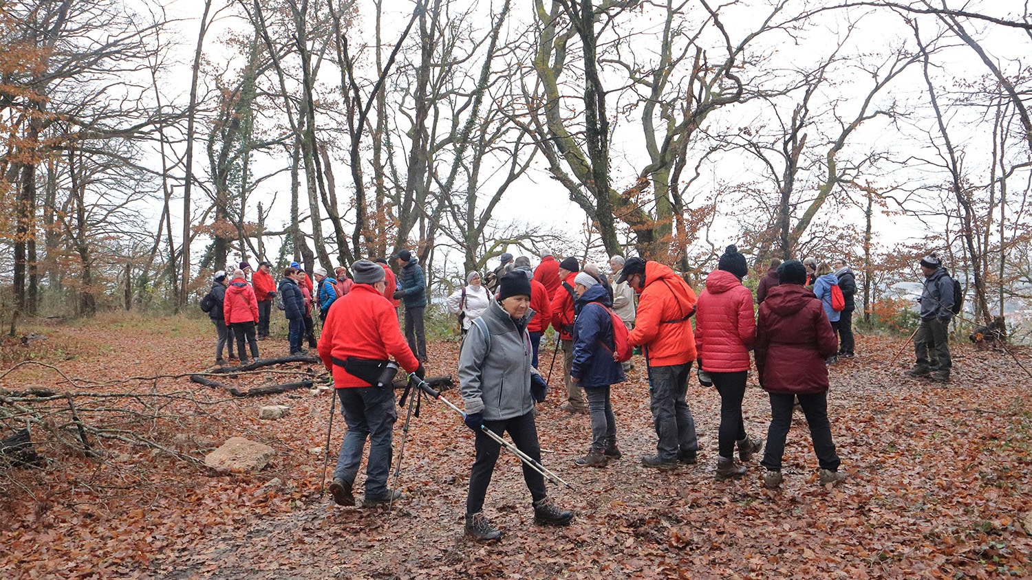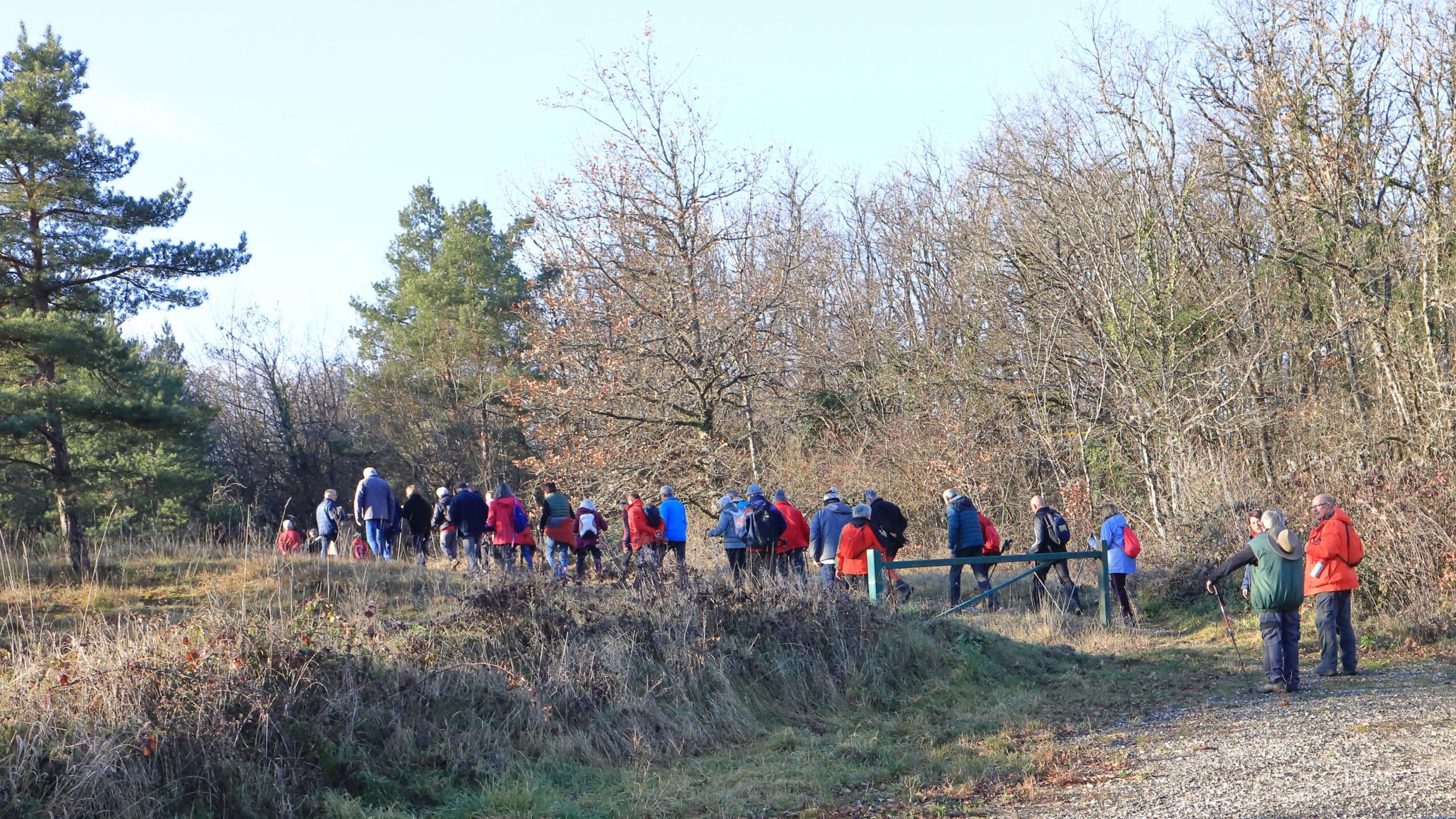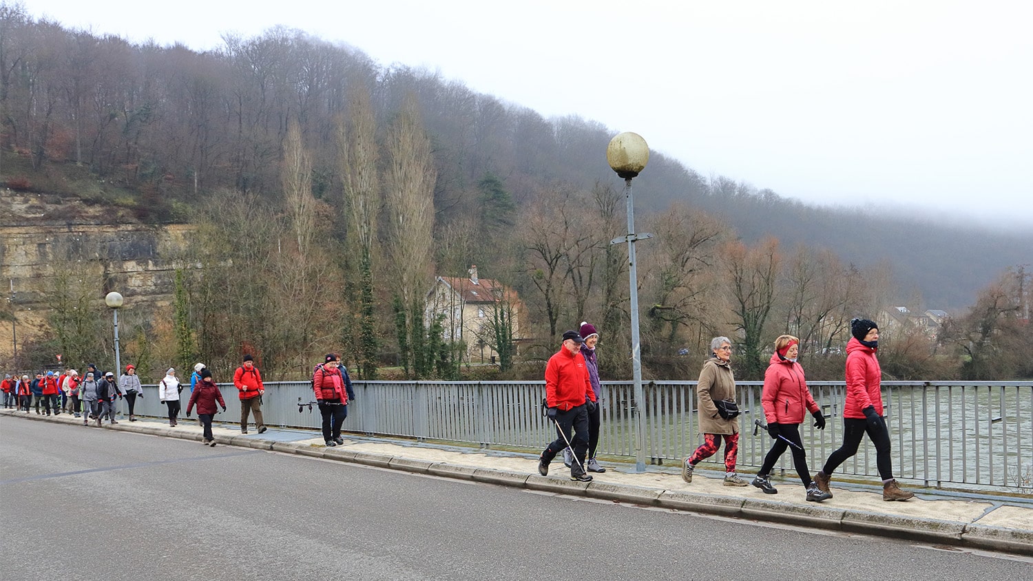 Vingt- six personnes se sont retrouvées au belvédère de Mandeure malgré le froid, le brouillard et la bruine, il y a bien longtemps que nous n’avions vu autant de monde sur une marche douce.